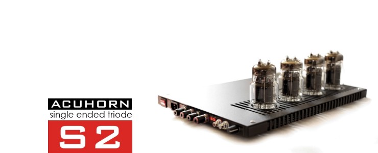 acuhorn S2 stereo tube amplifiers output transformerless type. Single ended, class A. Hi-tech architecture amplifier with Vicor modules DC-DC converters. Audio path solid core PCOCC copper.